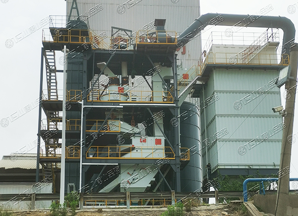 原料經(jīng)過電子秤進入到皮帶輸送機中,由全封閉的提升機將物料入到五孔碾磨制砂機內進行破碎處理,再由空氣篩對破碎后的物料進行篩分、選粉處理,篩分后的較大物料會返回五孔碾磨制砂機中進行二次破碎,符合要求的砂子則由傳送帶輸送至成品倉中;篩分過程中的粉塵會經(jīng)粗細粉分離機進入到布袋收塵器內,而其中較大的粗顆粒會在粗細粉分離機的作用下,按需求在成品砂中進行回摻,細粉塵將通過風力進入到布袋收塵器,作為副產(chǎn)品進行使用。